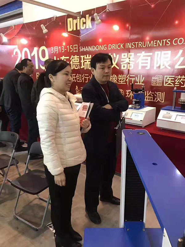 上午九點(diǎn),一曲歡快的《好運(yùn)來》為展會(huì)開幕式增添了濃墨重彩的一筆。本次展會(huì),我們展出的產(chǎn)品有:電子拉力試驗(yàn)機(jī)、壓縮儀、耐破度儀、測厚儀、熱封儀、耐折度儀、戳穿度儀以及各種取樣器。展會(huì)開始不久,憑借產(chǎn)品的外觀、性能以及參展人員專業(yè)的產(chǎn)品知識、銷售技能,我們的展臺前來了一波又一波的觀展人員。為企業(yè)帶來了更深層次的潛在客戶。